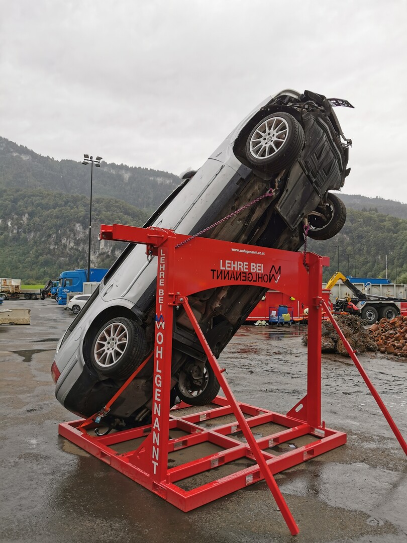 Einsätze noch effizienter meistern „Eine solche Veranstaltung und Weiterbildung kann nur durch das Zusammenwirken von vielen Akteuren durchgeführt werden“, richtete Wolfgang Burtscher einen Dank an die Firma Loacker Recycling, die neben dem Gelände auch rund 30 Schrottfahrzeuge für das Training zur Verfügung stellte. Dazu konstruierten vier Lehrling von Fahrzeugbau Wohlgenannt in Dornbirn in 80 Arbeitsstunden eine Vorrichtung, die es ermöglicht Unfallfahrzeuge in verschiedenen Positionen zu bringen, wodurch unterschiedliche Szenarien geübt werden können. Am Ende konnte Burtscher ein positives Resümee über den Übungstag ziehen: „Das praktische Arbeiten mit den Rettungsgeräten und der Informationsaustausch können beitragen, in Zukunft Einsätze noch effizienter und sicherer zu meistern.“